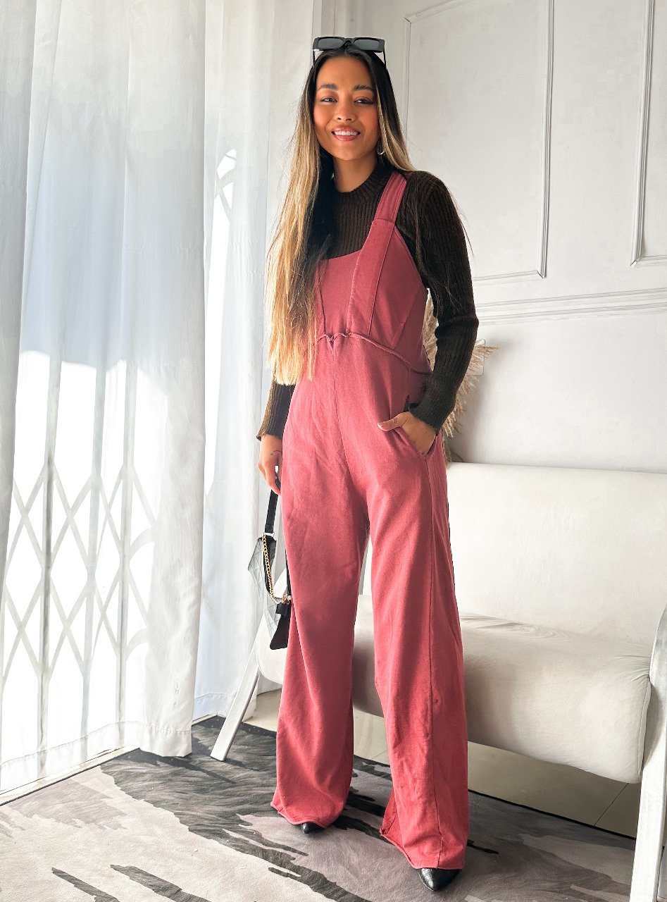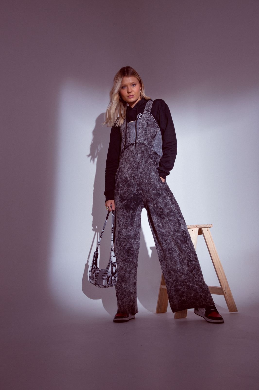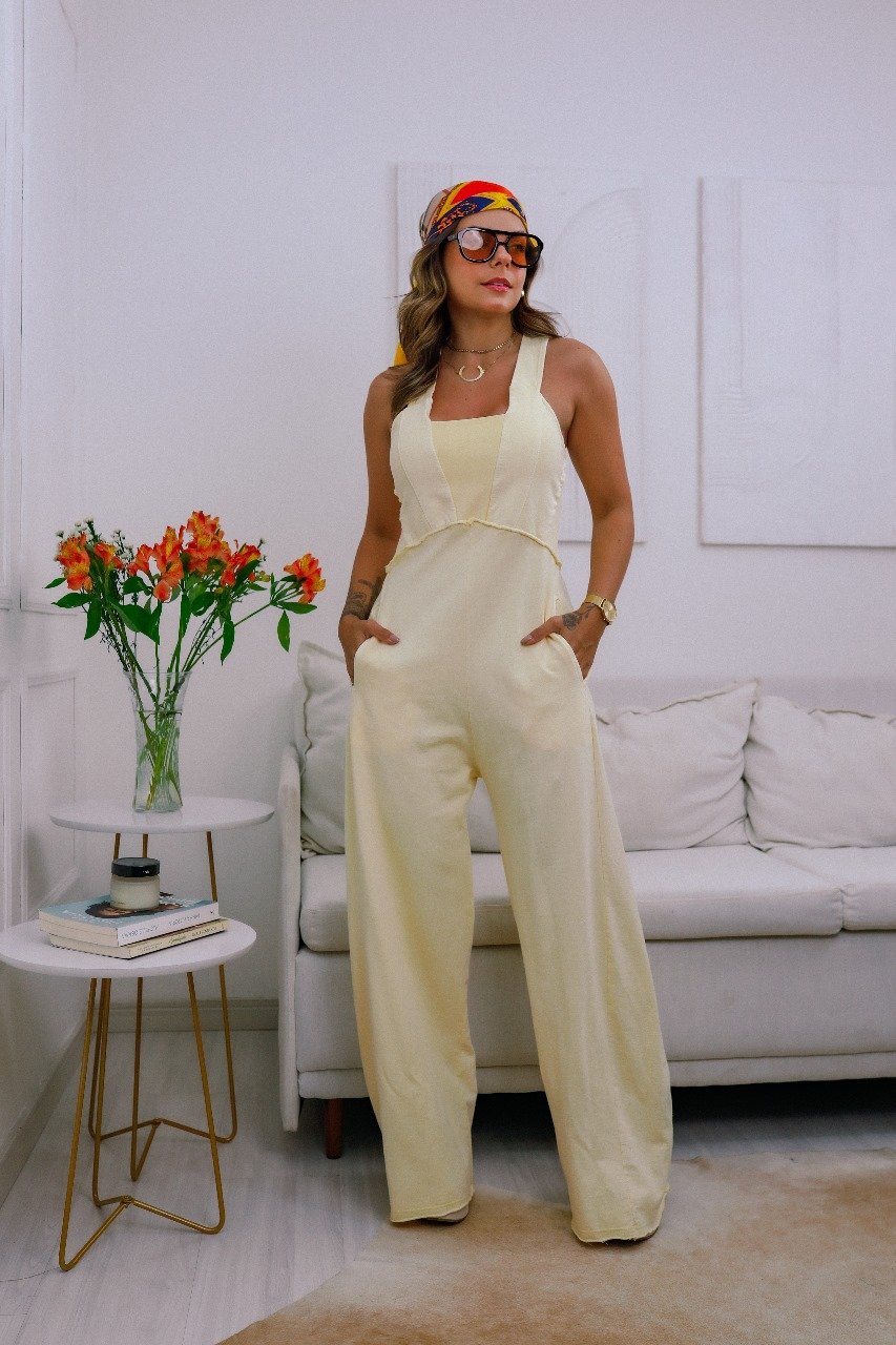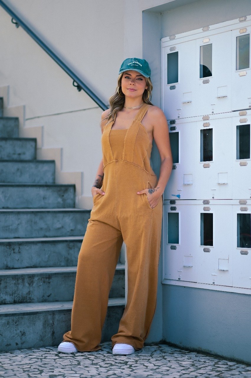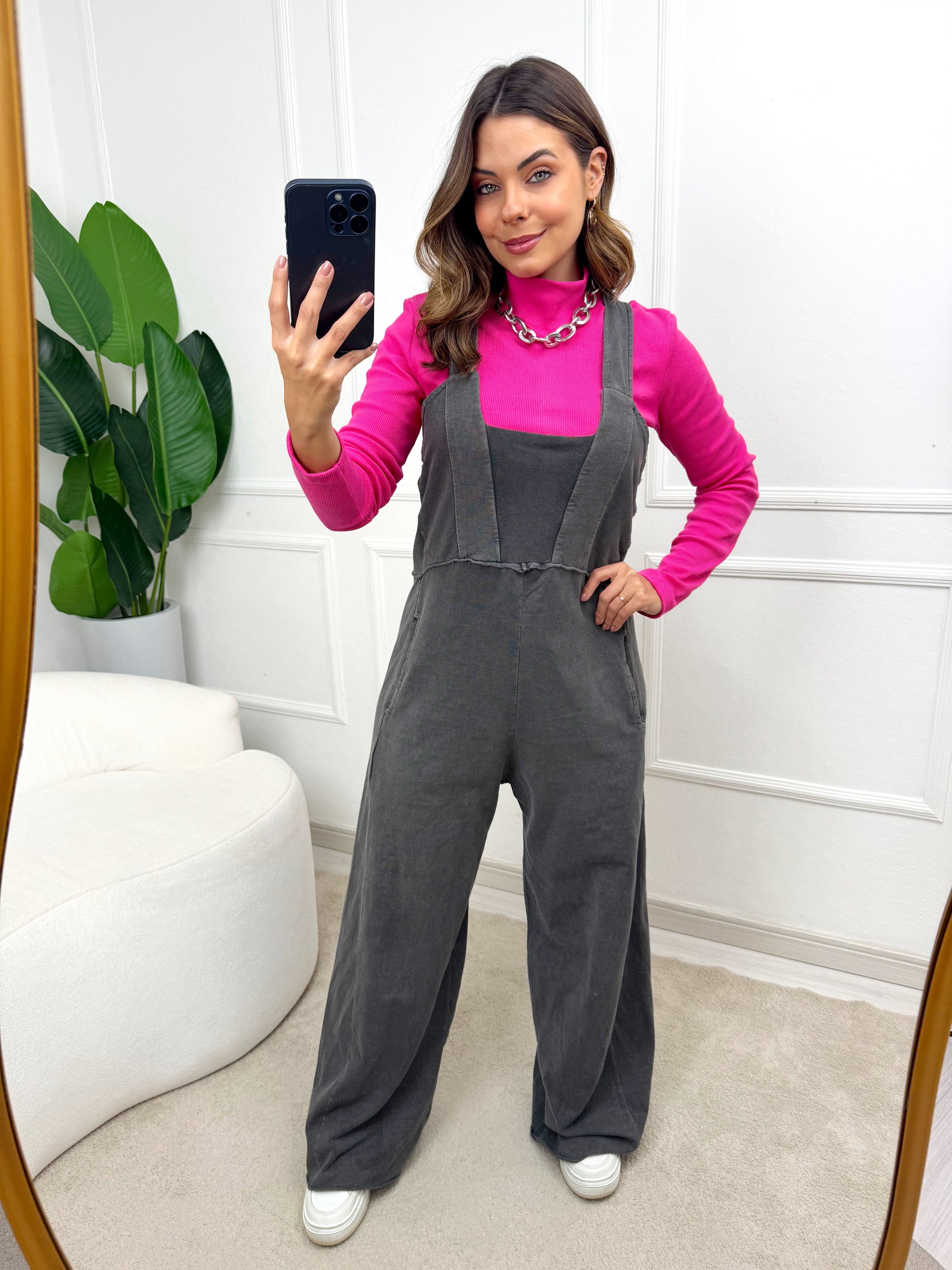 Nosso Macacão Estonado em Moletinho é feito com 100% algodão, oferecendo toque macio e respirável. O corte wide leg e o caimento larguinho garantem um visual moderno e descomplicado.