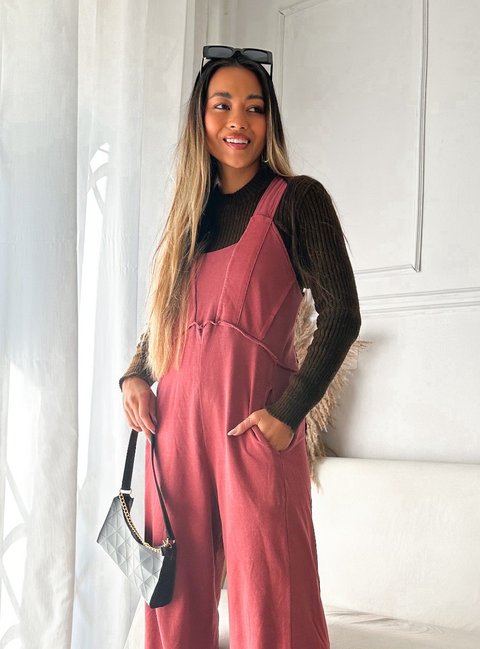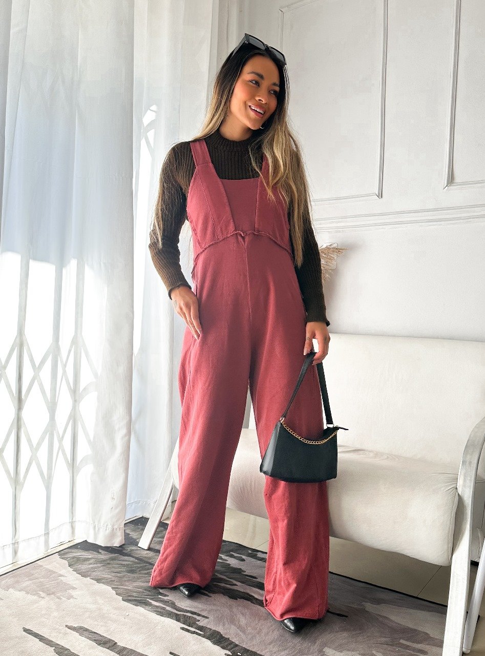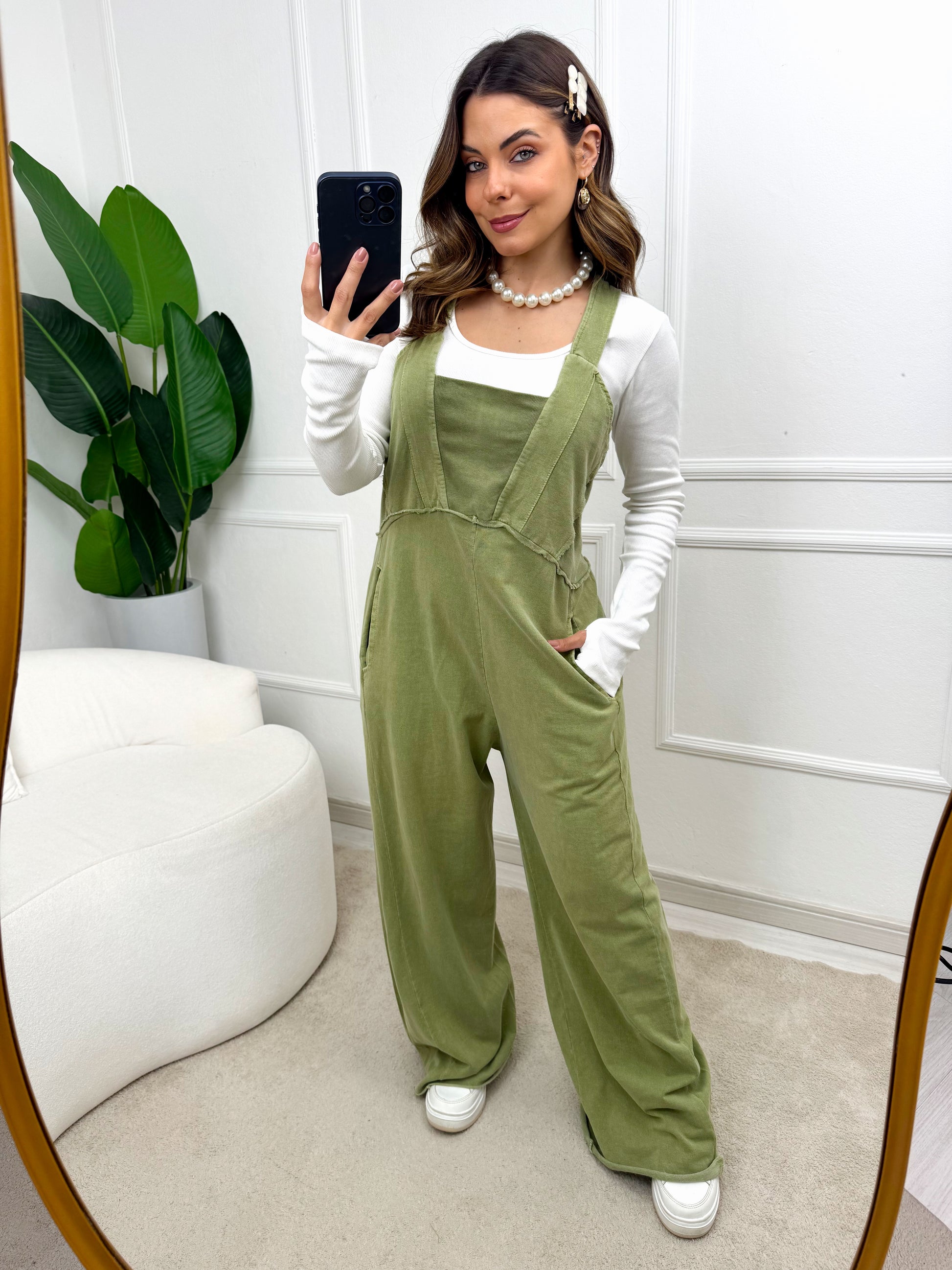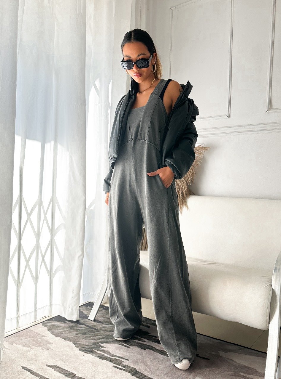 Nosso Macacão Estonado em Moletinho é feito com 100% algodão, oferecendo toque macio e respirável. O corte wide leg e o caimento larguinho garantem um visual moderno e descomplicado.