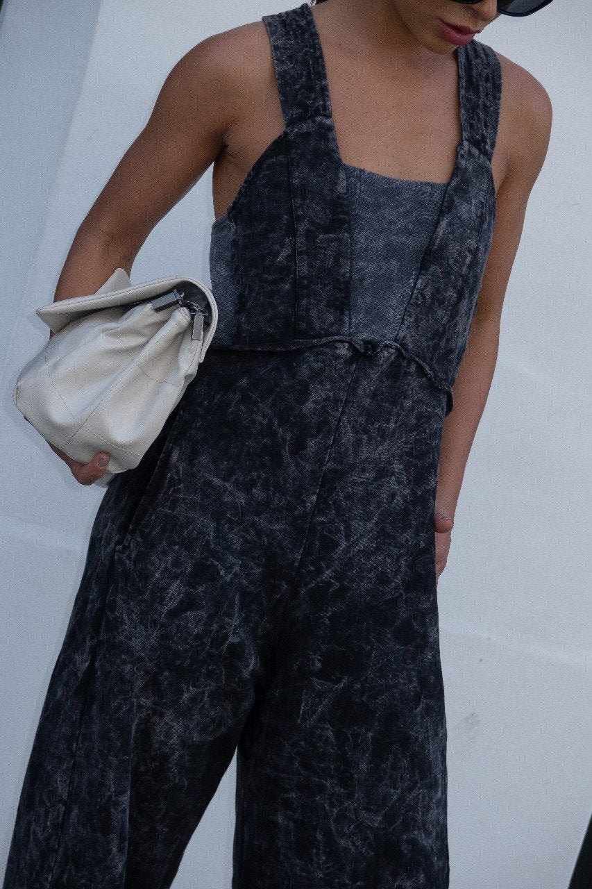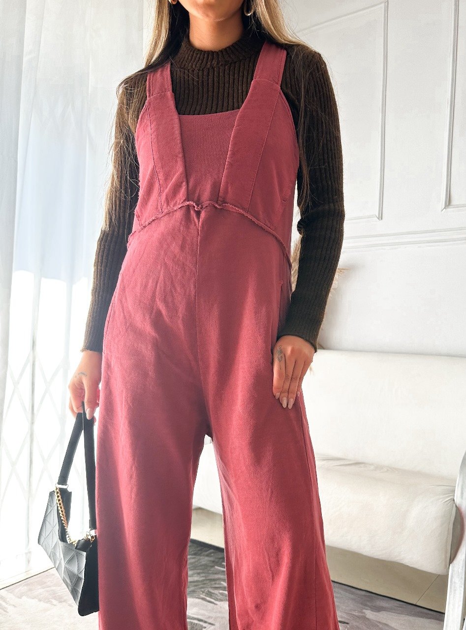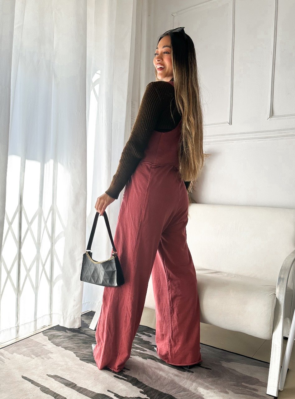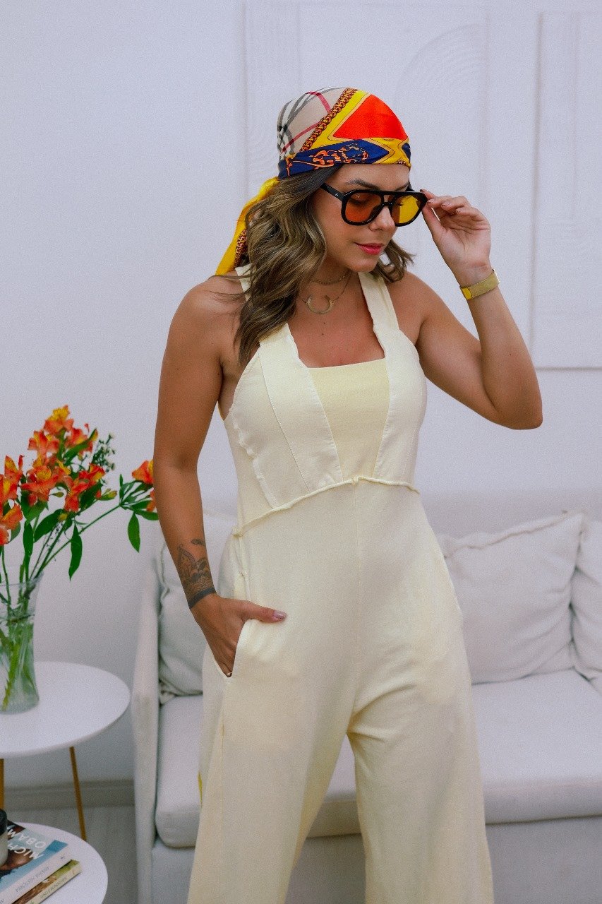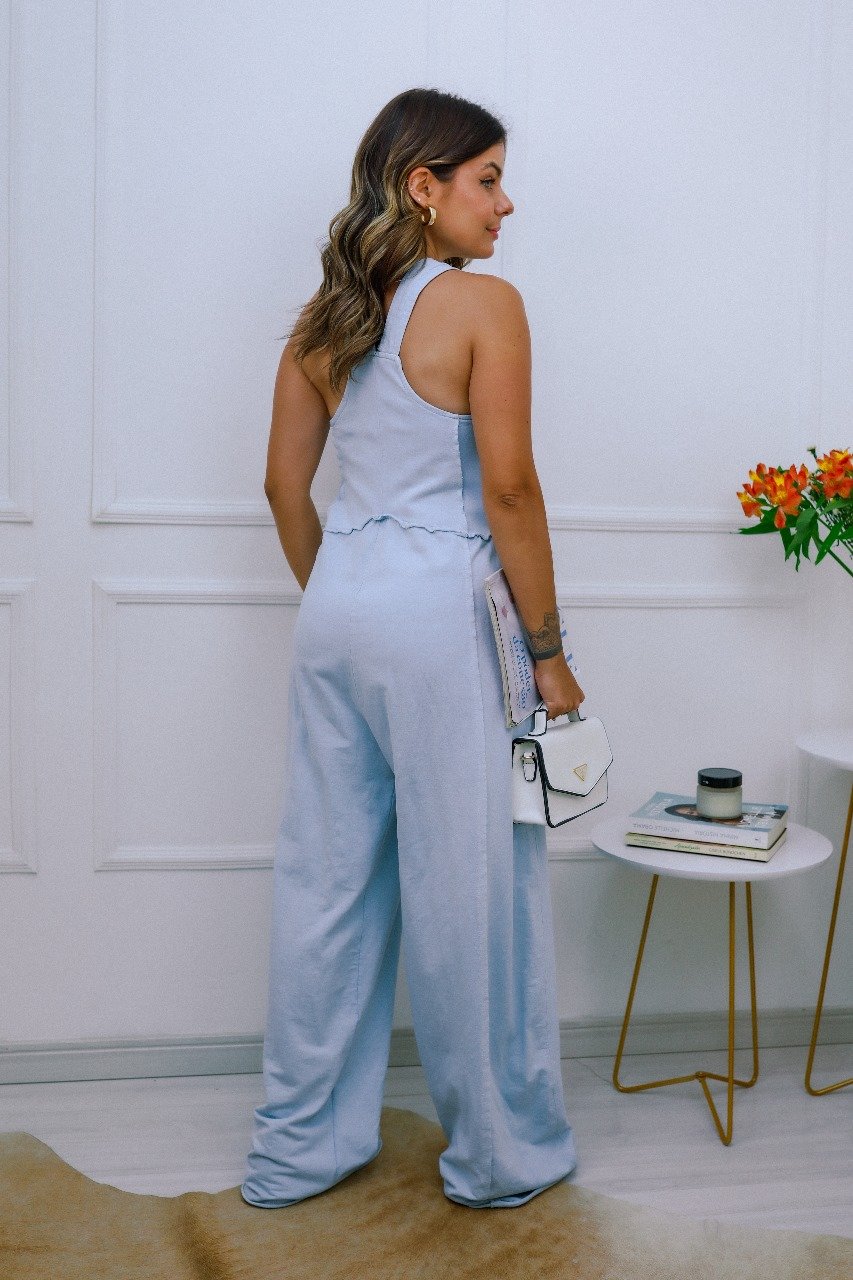 Nosso Macacão Estonado em Moletinho é feito com 100% algodão, oferecendo toque macio e respirável. O corte wide leg e o caimento larguinho garantem um visual moderno e descomplicado.