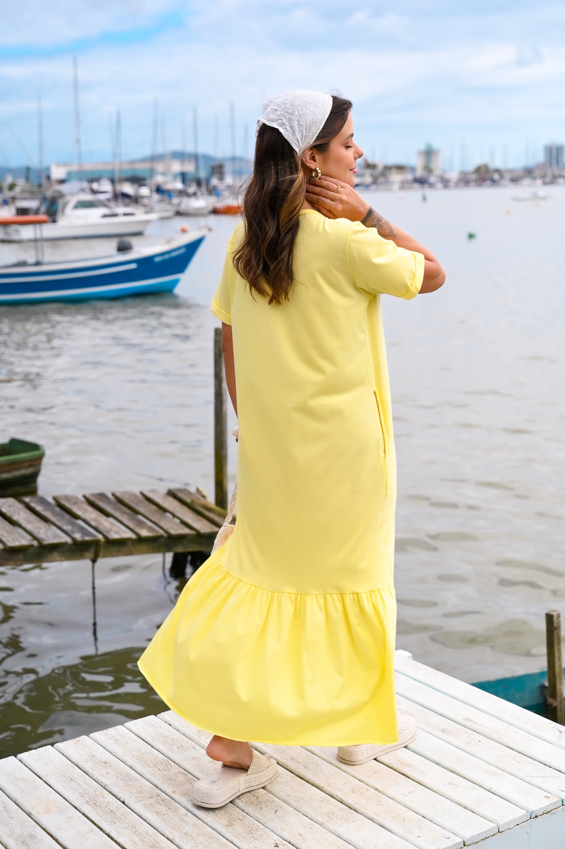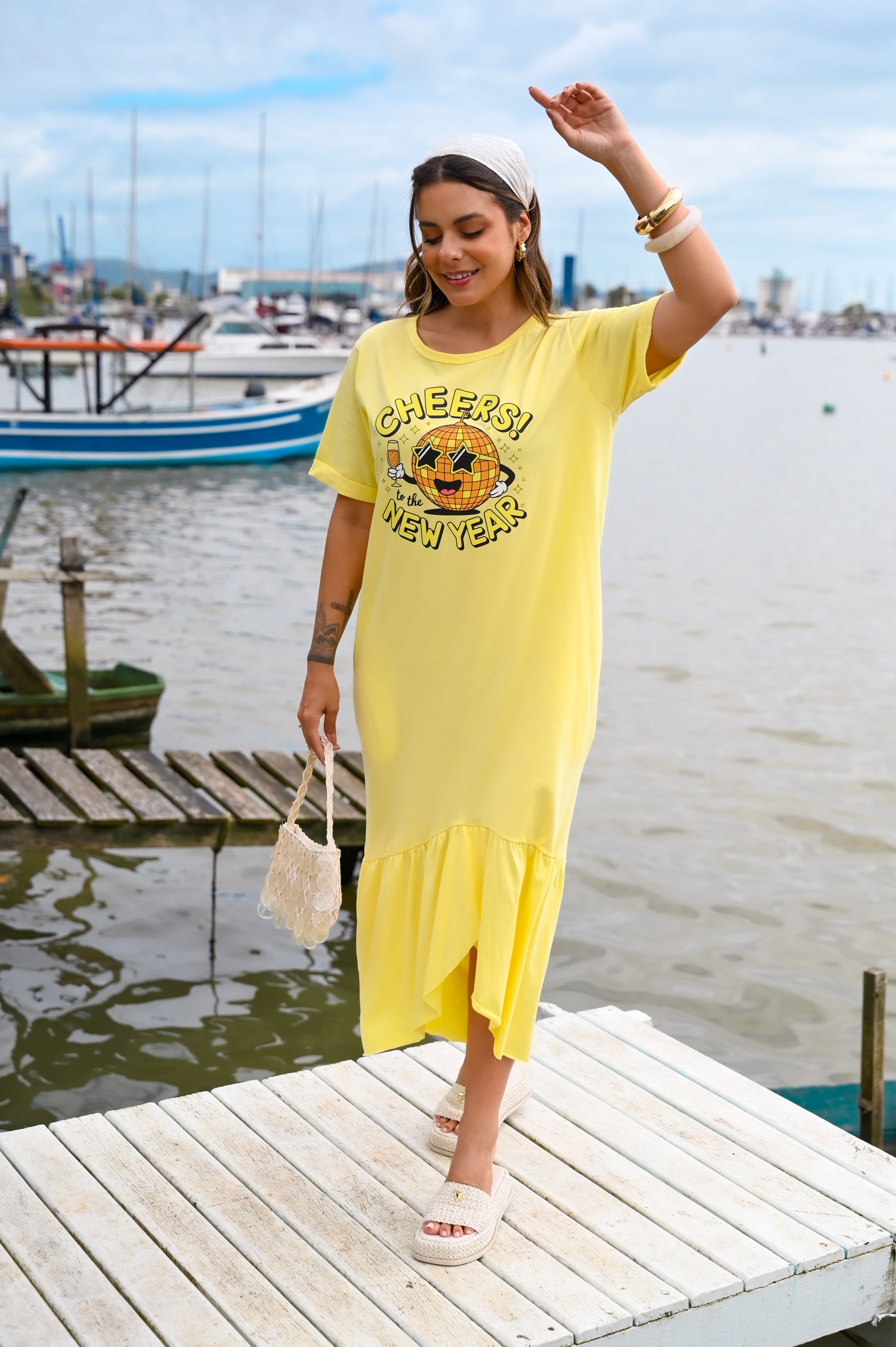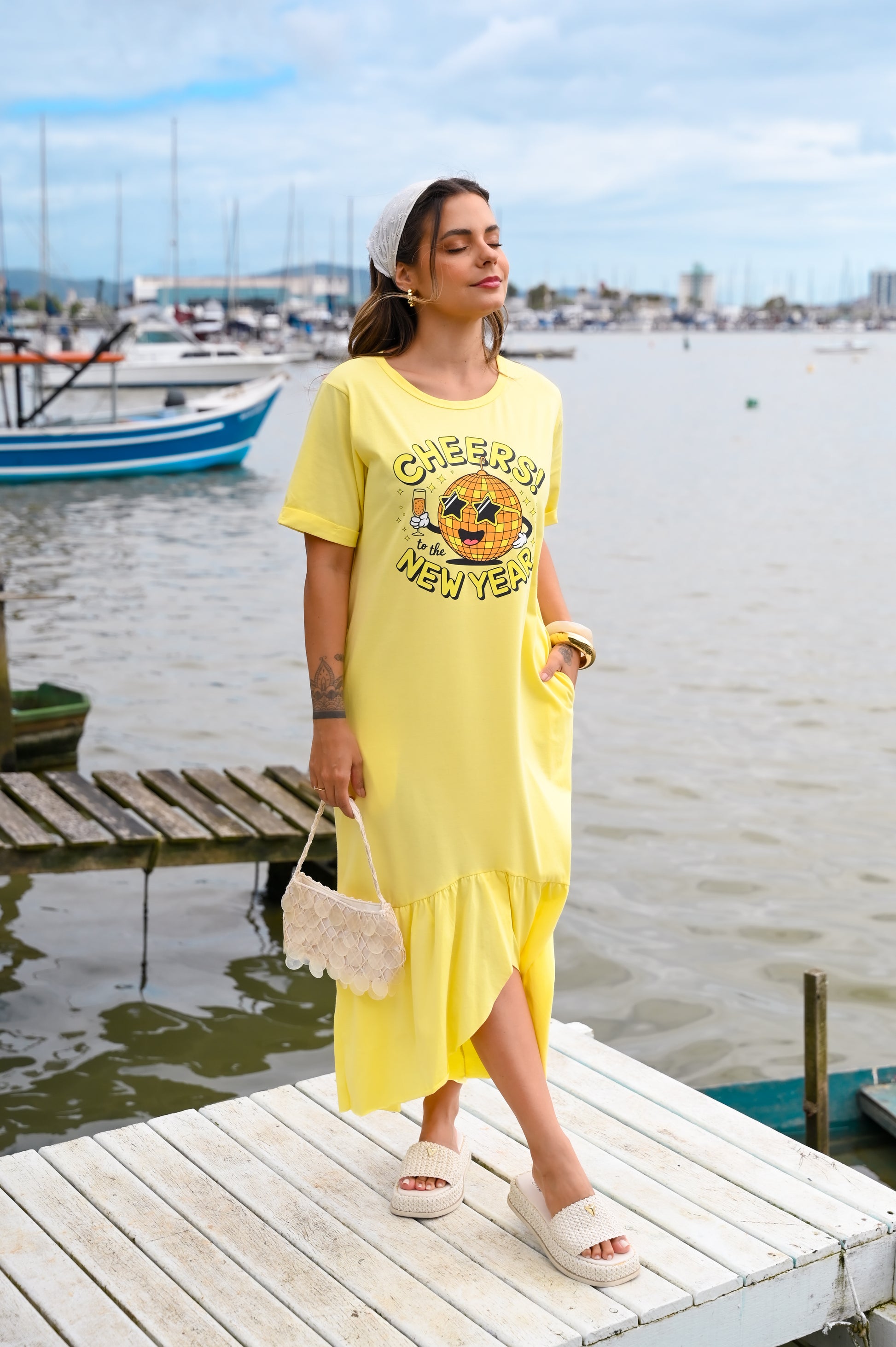 Quer comemorar seu ano novo com estilo e atitude além daquela estampa memoravel para o ano novo? Modelo amplo e confortável amado pelas nossas clientes. Feito de meia malha algodão com bolsos funcionais e um babado descontraído que deixa seu look mais cool para o Verão.