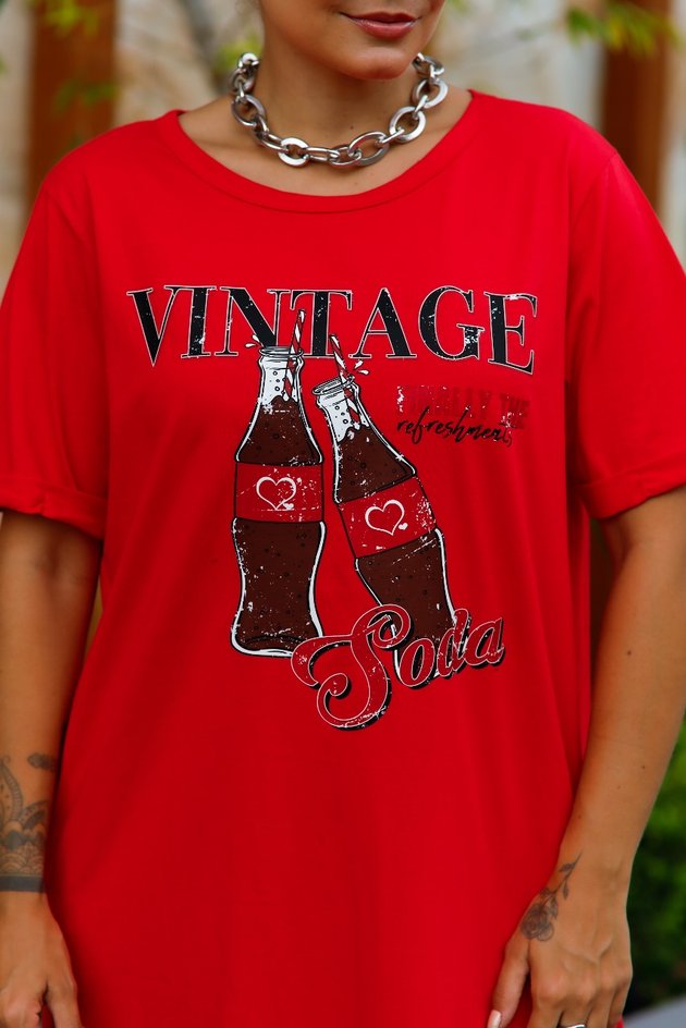 Atualize seu guarda-roupa com o vestido midi perfeito para combinar estilo e conforto. Feito em meia malha 100% algodão, ele é leve e ideal para qualquer ocasião. Com babado na barra, racha frontal e bolsos práticos, oferece um toque moderno e funcional. A manga curta dobrada e a gola redonda garantem um acabamento casual. O destaque fica por conta da estampa de soda com escrita "Vintage Soda", que adiciona personalidade única à peça. Aposte nesse modelo versátil para um look autêntico e cheio de estilo!
