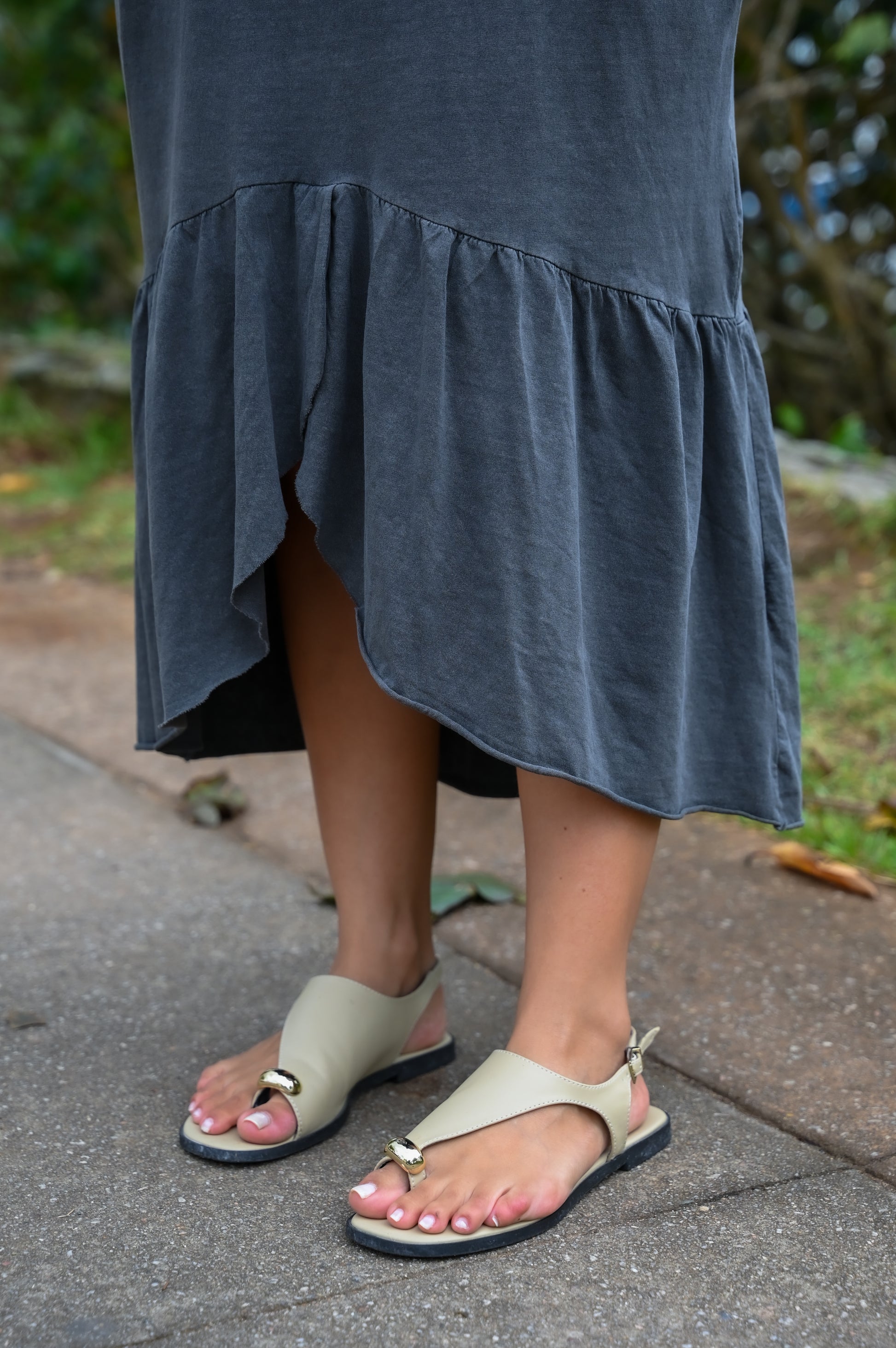 Vestido Midi Estonado de Algodão Com Babado Liso Greece